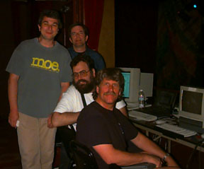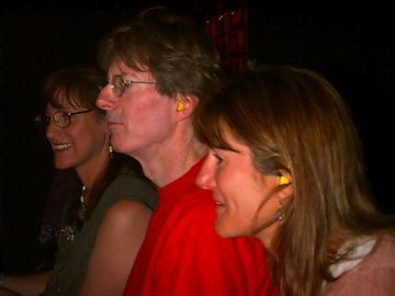 In a pose either reminiscent of Mount Rushmore, or an Emerson, Lake, and Palmer Album, we find Janet (typist), Phil, and Jill Lesh engrossed in the post-AOL dead.net IRC action. Note the earplugs. It gets loud for Phil too!