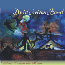 Fasten your seat belts and hang on tight because the David Nelson Band (DNB) is about to embark on another high adventure. On April 15th, DNB and High Adventure Records will release Visions Under the Moon, the group's third independent release and its first full-length studio effort. Last September, DNB and acclaimed record producer Aaron Hurwitz took up residence at the Aladdin Theater in Portland, Oregon, for a week-long series of recording sessions that culminated in a memorable live performance. The DNB invited fans and friends to attend the preconcert recording sessions. The result captures the unique and magical synergy between band and audience by taking the best aspects of the live performances and blending them with those of a quality studio production.